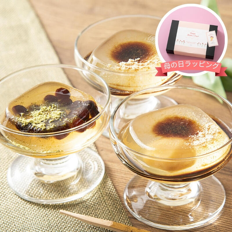 現品・内容・サイズ・材質: わらび餅(本蕨・小豆・栗各2個)・くず餅(本葛・黒糖各2個)・きな粉・黒みつ各6個・抹茶きな粉・和三盆みつ各4個