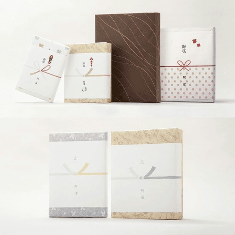 きちんとした場面に最適な基本デザインのほか、遊び心のある柔らかな印象のものまで計20種類をご用意しております。表書き・名入れにも対応。旧字体の作字も承ります。