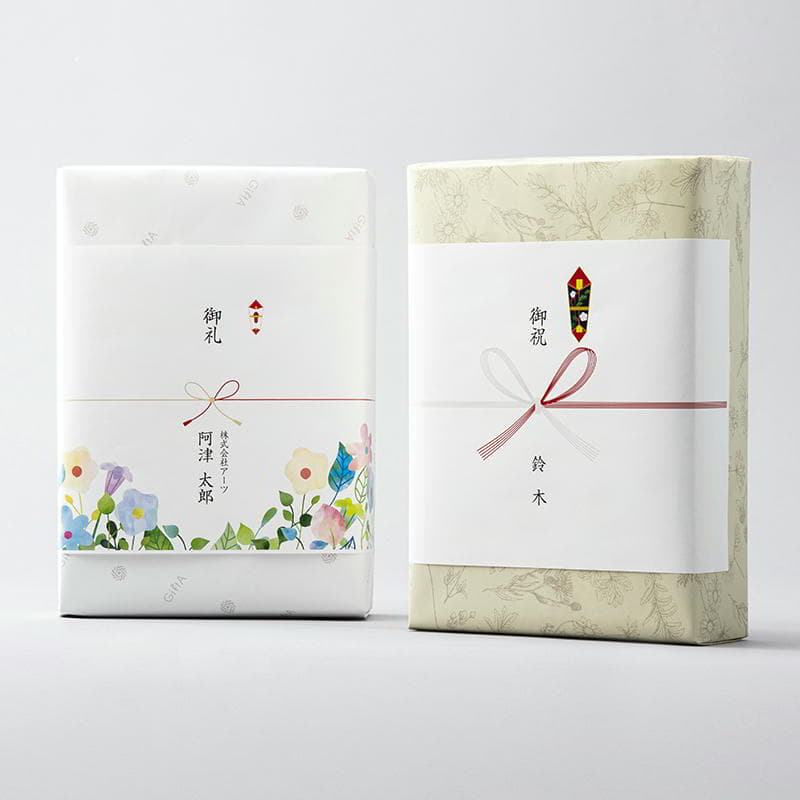 ギフタのオリジナル包装紙をお選びいただけます。お祝いからお礼まで幅広い用途に対応。弔事用のシンプルなデザインも豊富にご用意しています。