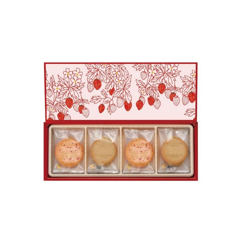 福岡県産のあまおうパウダーが入った甘酸っぱいホワイトチョコレートをストロベリー濃縮果汁入りの赤いドットが可愛らしいラングドシャ生地でサンドしたあまおう苺クッキーと、ミルクチョコレートクッキーを詰め合わせました。サクッとした口あたりと、風味豊かなチョコレートのハーモニーをお楽しみください。