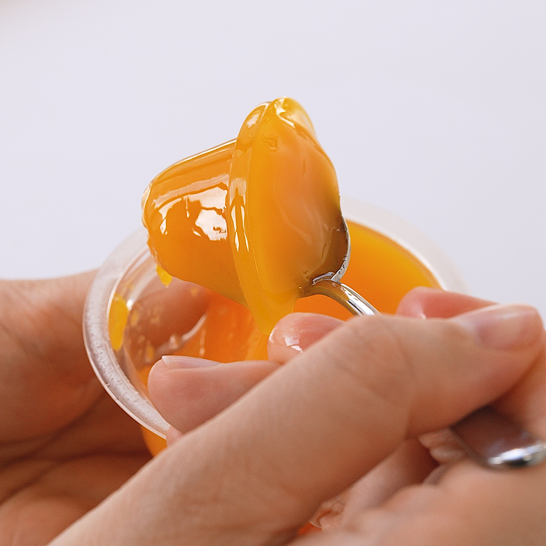 厳選されたフルーツの果汁と果肉をたっぷり使用したゼリーは、やさしい甘さとともに、なめらかなのどごしを楽しめます。