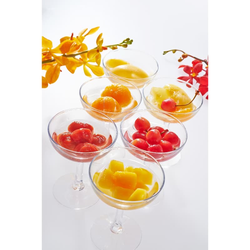 一年で一番美味しい時期に収穫した果物を、甘さ控えめのシロップと一緒に、ひとつひとつ手作業で瓶に詰めました、銀座千疋屋オリジナルのフルーツコンポートです。《みかん》国産のみかんを余すところなく味わっていただける、まるごと果実の入ったコンポートです。《さくらんぼ》日本一の生産地、山形県で収穫されたさくらんぼをコンポートに仕上げました。《マンゴー》完熟したマンゴーをパッションフルーツ果汁を加えたシロップでコンポートに仕上げた爽やかなコンポートです。《白桃》最も美味しい時期に収穫された白桃を風味豊かなシロップで仕上げたコンポートです。《トマト》真っ赤に熟したミニトマトを使用したフルーティーなコンポートです。