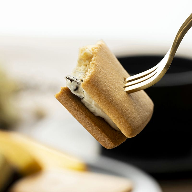 なめらかで口当たりのやさしいフルーツクリームと、香り豊かな果汁を香ばしいクッキーでサンドされたフルーツサンド。