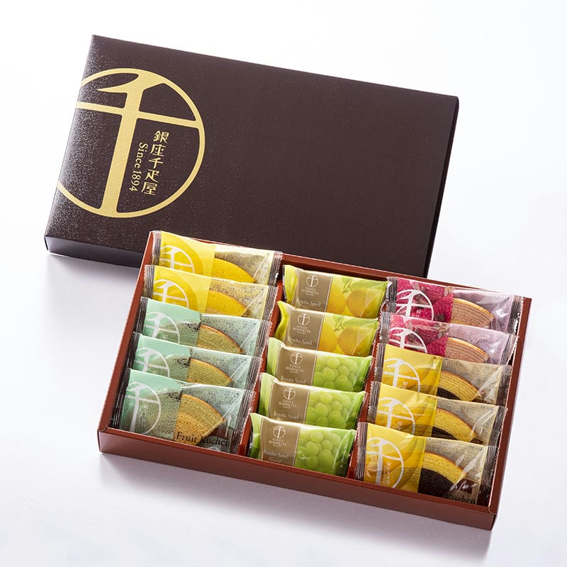 銀座フルーツクーヘン (いちご&ミルク・レモン&はちみつ 各2個、メロン&ミルク・バナナ&チョコ 各3個)、銀座フルーツサンド (柚子 2個、マスカットレーズン 3個)