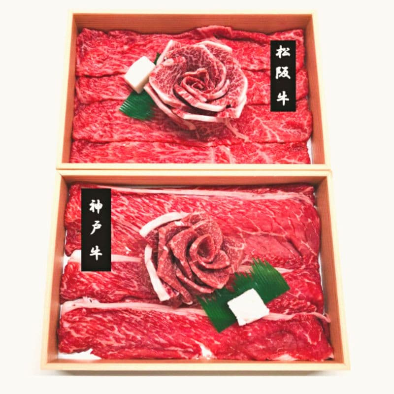 日本が誇るブランド牛「神戸牛」・「松阪牛」のモモ肉を、召し上がりやすいようにカット。華やかな花盛りで、とっておきのギフトやおめでたい席ににぴったりです。