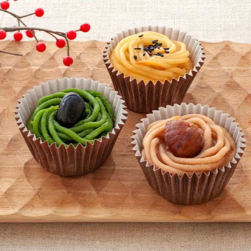 肌寒い季節に旬を迎える素材、栗・さつまいも・黒豆抹茶の3種。
