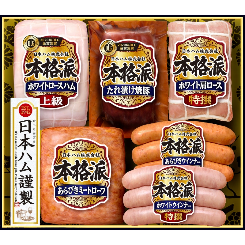 商品内容:上級ホワイトロースハム360g、たれ漬け焼豚170g、特撰ホワイト肩ロース180g、あらびきミートローフ135g、特撰ホワイトウインナー70g、特撰あらびきウインナー70g