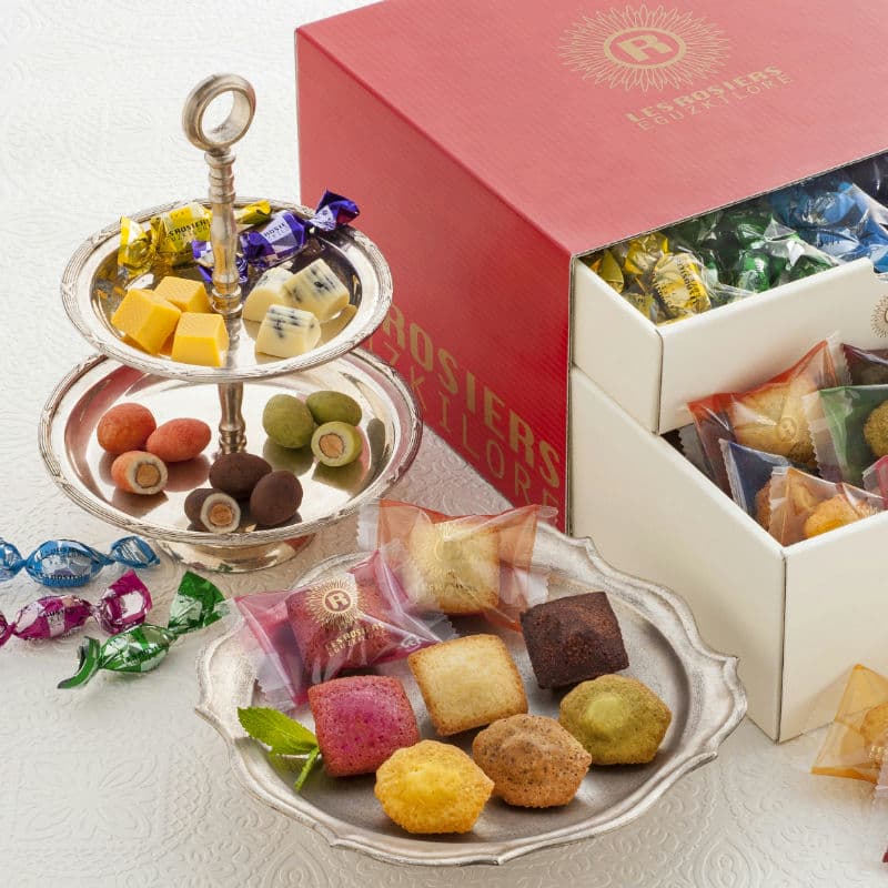 【内容量】フィナンシェ(プレーン・ショコラ・フランボワーズ)×各7、マドレーヌ(ピスタチオ・アールグレイ・マンゴー)×各7(計42)、プチショコラ(ストロベリー・マンゴー・レーズン・ティラミス・抹茶)×各10(計50)