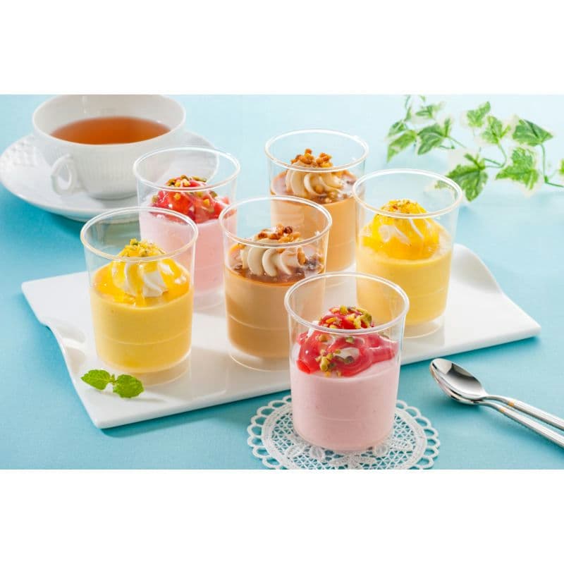 ティールームの季節のスイーツメニューをモチーフに、彩りのあるデザートギフトに仕上げました。なめらかなムース仕立てで、ホイップクリーム・ソース・果肉などを一つ一つ丁寧にトッピングしています。