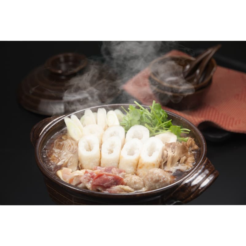 秋田の代表的な郷土料理。比内地鶏の美味しさが詰まった醤油味のスープが染み込んだ、きりたんぽが絶品です。きりたんぽ、比内地鶏肉、つみれ、ストレートスープが入ったセットです。