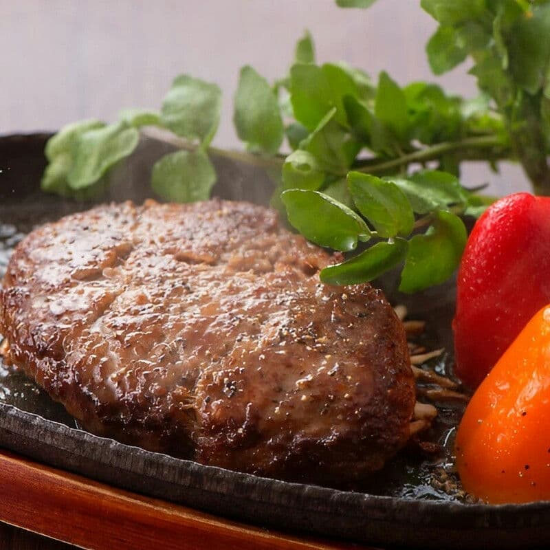 「こだわりハンバーグ」は、宮崎県産黒毛和牛と宮崎県産豚肉を使用し、塩も宮崎県産にこだわった一押しのハンバーグ。