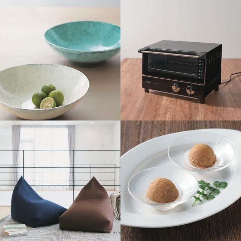 あたたかみのある食器や端正なグラス・カトラリー類、便利な国産キッチン家電まで、充実のラインナップ。