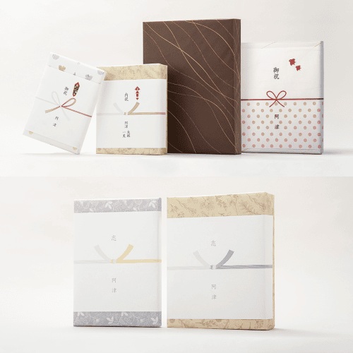 ギフタのオリジナル包装紙をお選びいただけます。お祝いからお礼まで幅広い用途に対応。弔事用のシンプルなデザインも豊富にご用意しています。
