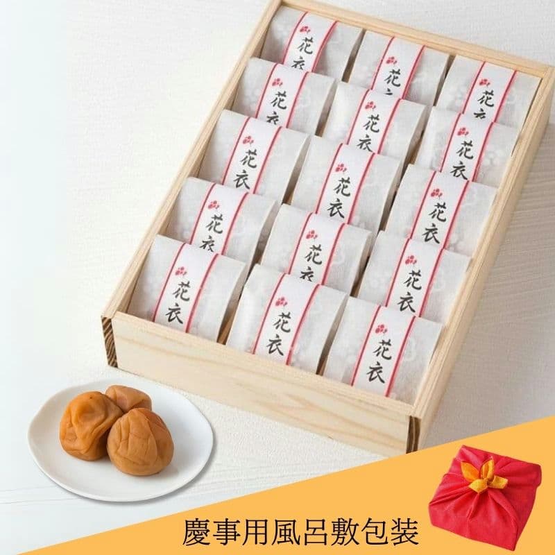 梅の最高品種「南高梅」を使った梅干し。中でも大粒のものを選んで和紙で個包装した逸品。贈り物をランクアップさせる風呂敷包装でお届けします。