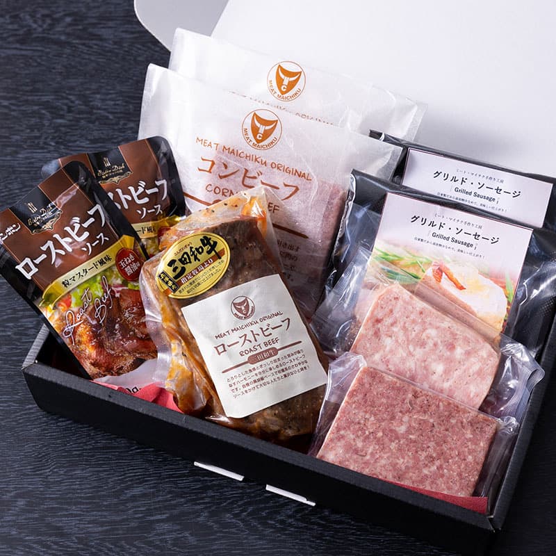 〈内容〉【三田和牛】ローストビーフ500g、【但馬牛100%】コンビーフ3個、自家製グリルドソーセージ3個