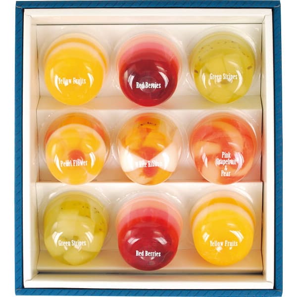 ミックスゼリー(グリーンストライプ×2・レッドベリー×2・イエローフルーツ×2・ホワイトリボン・パールフラワー・ピンクグレープフルーツと西洋梨)各125g