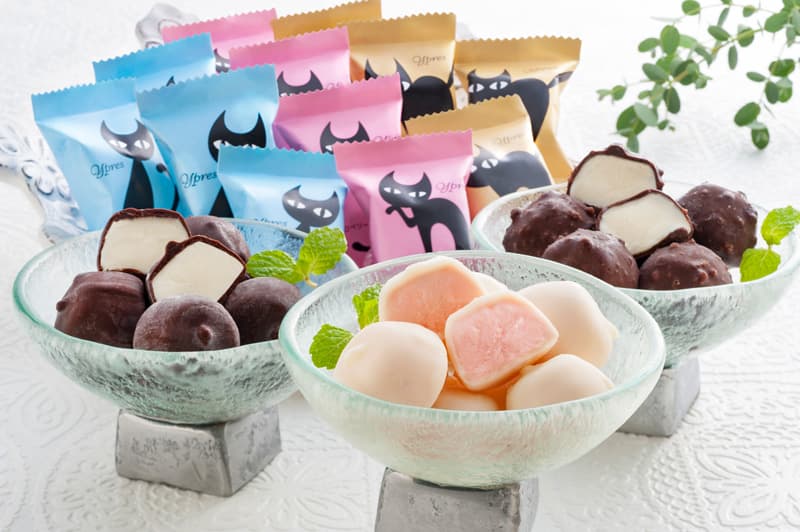 一口サイズのプチアイスをかわいらしい猫のパッケージでお届けします。バニラ・クランチ・ストロベリーの3種類の味をお楽しみください。子供から大人まで、人の集まるシーンで楽しめるボリュームのあるアイスギフトです。