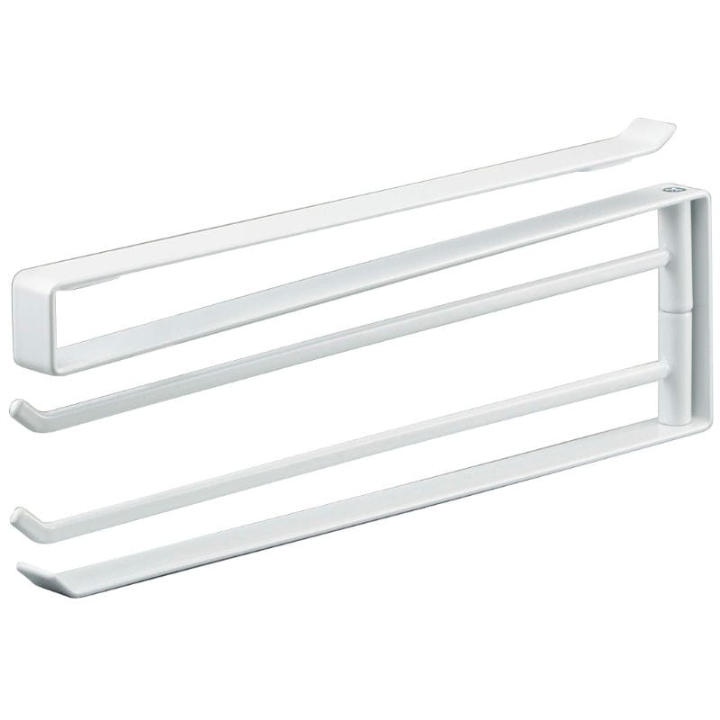●キッチンの吊り下げ戸棚に差し込むだけの布巾ハンガー。