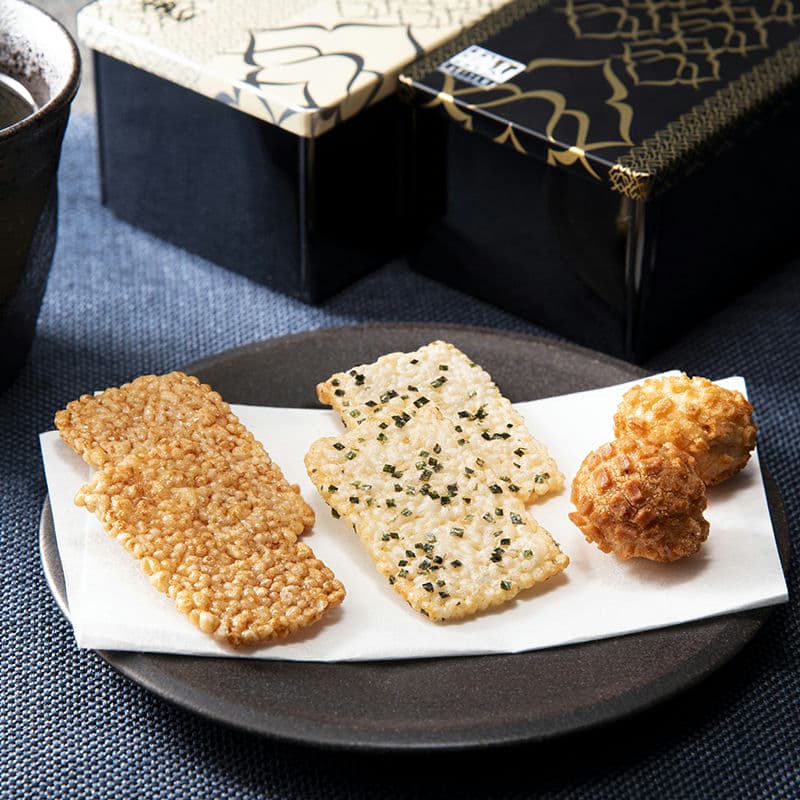 東京・赤坂に本店を構えるあられ・おかきの専門店です。希少な富山県特産の「新大正もち米」の粒の姿をそっくり生かして焼き上げた薄焼きおかき「慶長」と、アーモンド丸ごと一粒使った「慶凰」が有名です。秘書が選ぶ手土産として取り上げられることも。