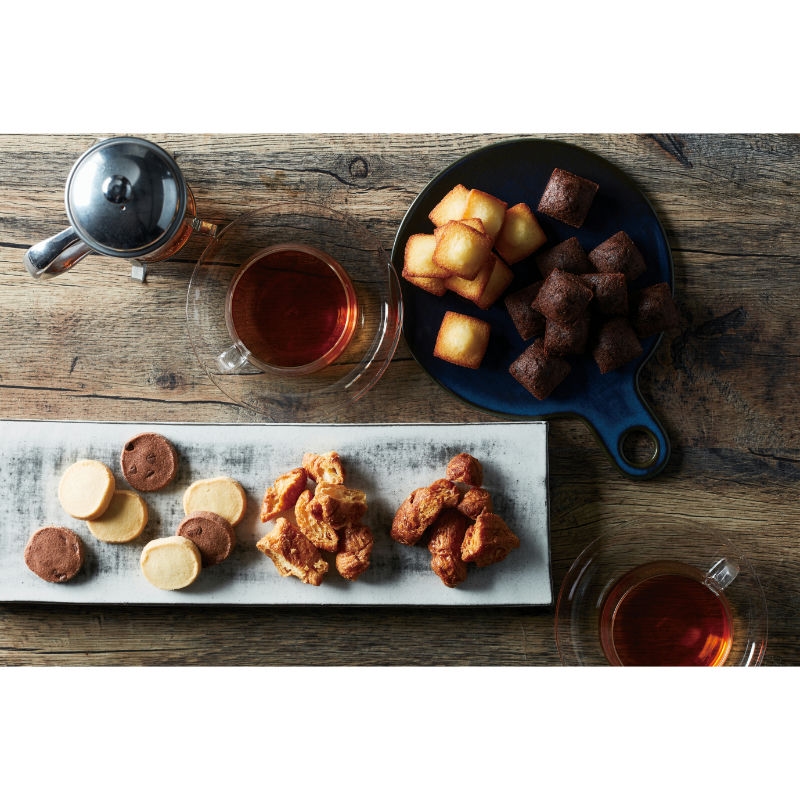 サクッとした食感のクロワッサンラスク・プチフィナンシェ・クッキーと、上品な味わいの焼き菓子を詰め合わせました。