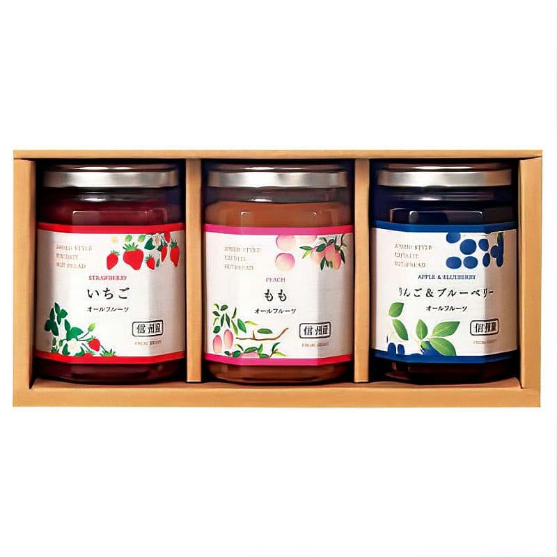【商品内容】いちごスプレッド140g、ももスプレッド140g、りんご&ブルーベリースプレッド140g