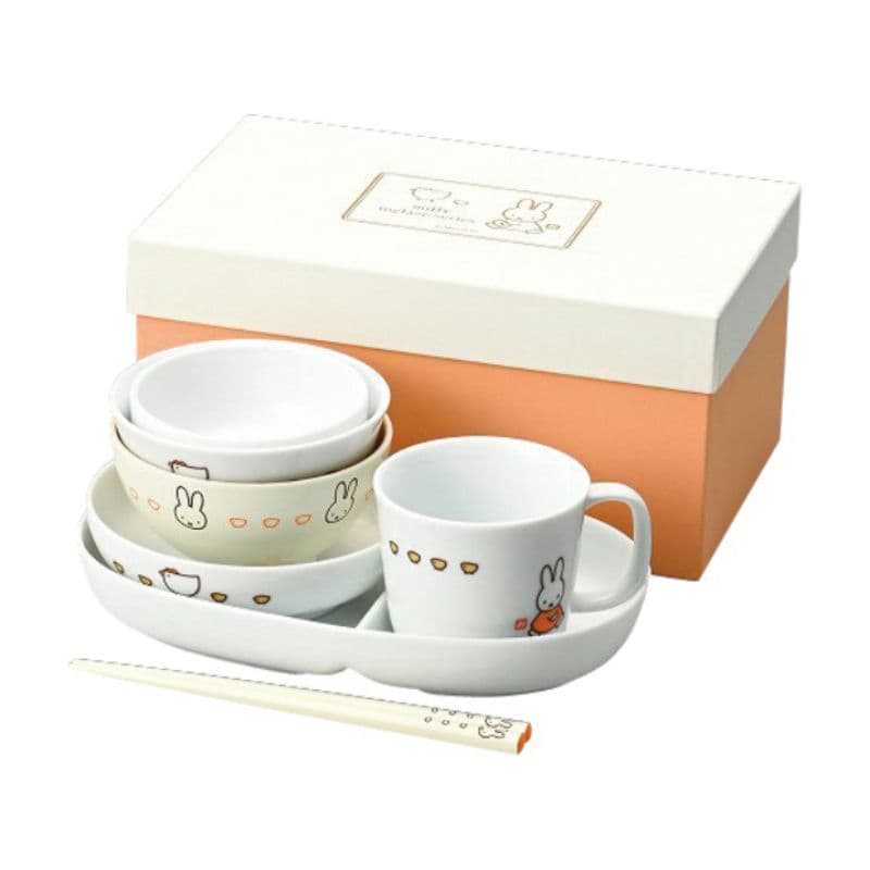 【商品内容】お茶碗φ105×50mm・マグφ75×65mm(165ml)・小皿φ120×35mm・小鉢φ85×40mm・仕切り皿210×130×30mm:磁器、塗り汁椀φ102×55mm:PET・ABS樹脂・ウレタン塗装、箸170mm:天然木・アクリル塗装