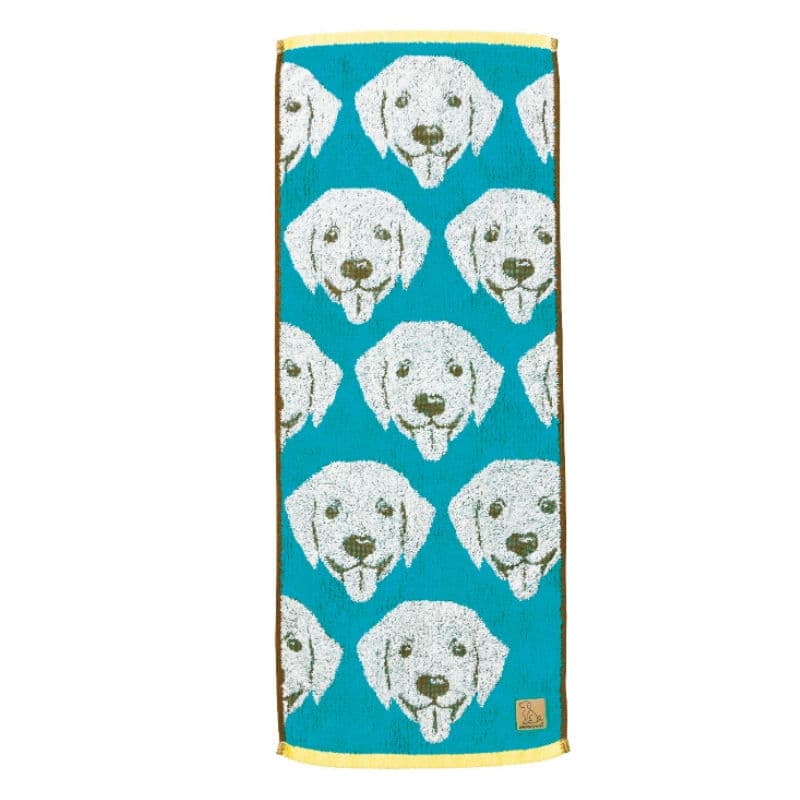 ポップなカラーと、表情豊かな犬たちが魅力のタオルです。
