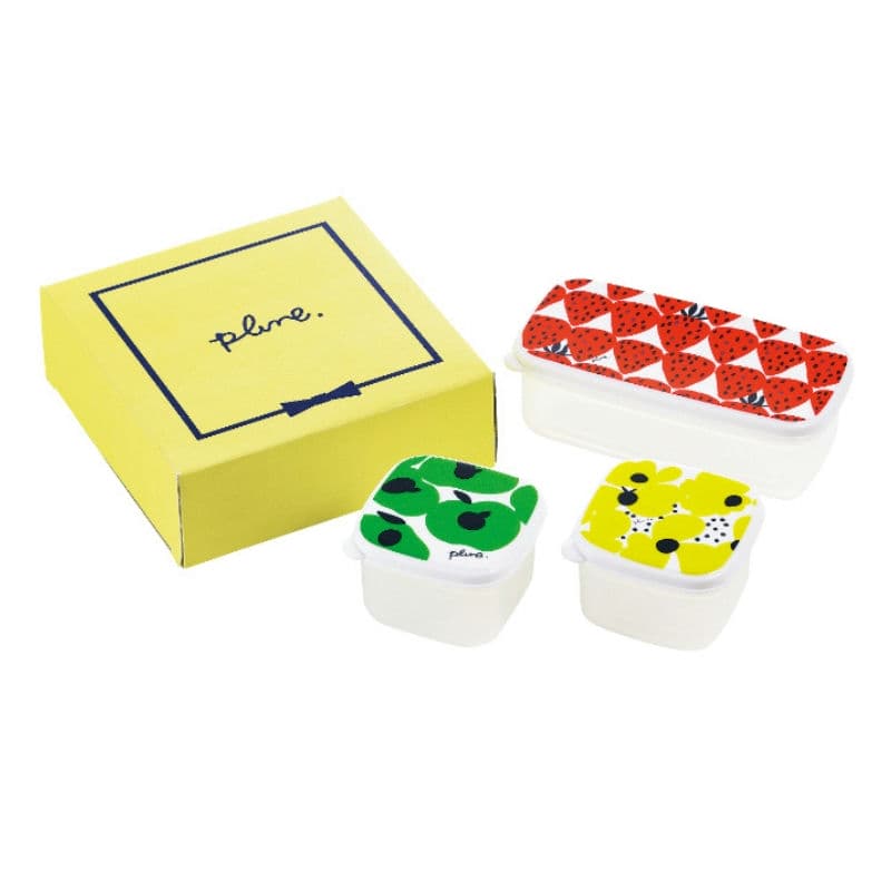 フルーツ&フラワー模様で女性に好まれます。蓋付だから冷蔵庫内でも積み重ねて保存しやすい容器です。蓋を外せば本体は電子レンジにかけられます。本体は半透明なので保存した内容が分かりやすく管理しやすい!