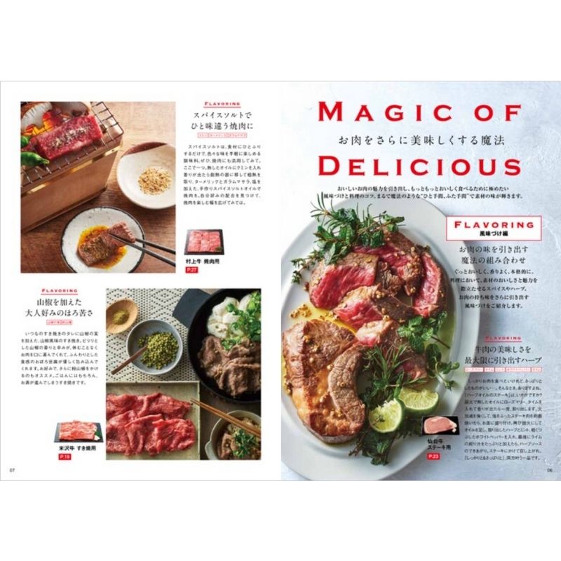 ひと口に「お肉」といっても種類はさまざま。ブランド精肉から名店の一皿、デリカテッセンまで豊富にそろいます。めくっても、めくってもお肉が並ぶ誌面は圧巻!お肉好きにはたまらない一冊です。