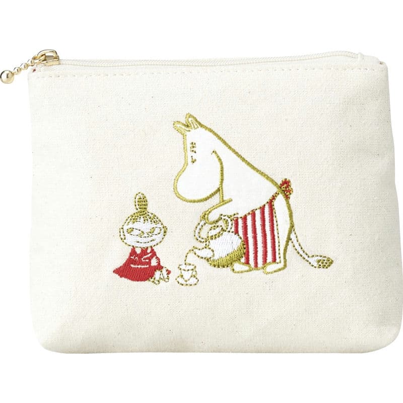 お茶を入れるムーミンママとリトルミイのアップリケ刺繍がかわいいティッシュケース付きポーチです。