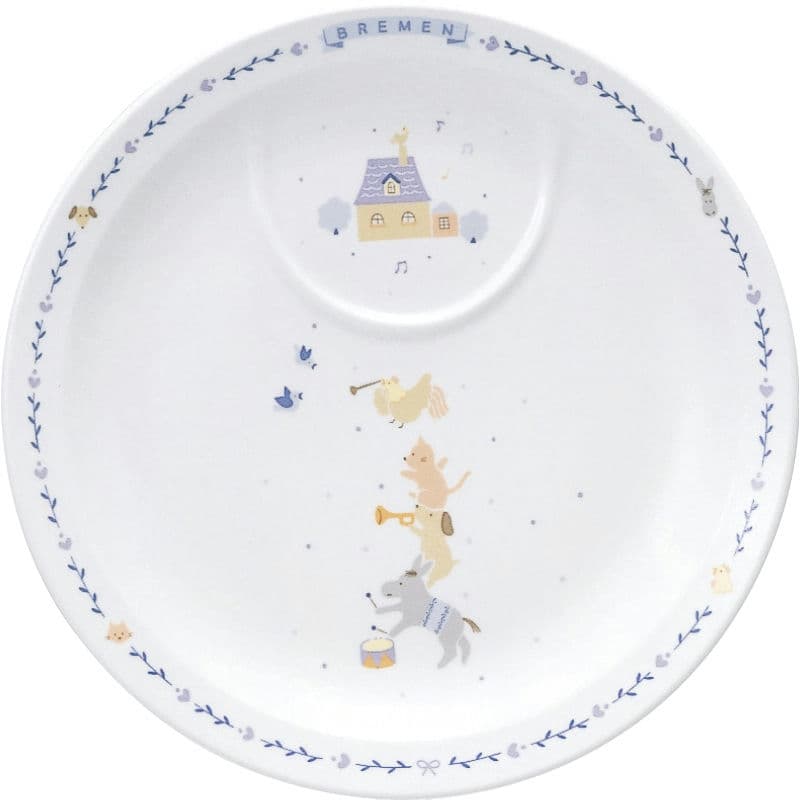 中途半端な仕切りをやめて、プレート部分を大きくしマグカップとおやつ皿を受けられるスペースを作りました。お母さんの遊び心で、楽しい食事が演出できます。ご飯、おかず、デザートをワンディッシュで盛り付けることができます。割れにくい、耐熱強化耐熱磁器「テクノセラム」製なので、お食い初め、離乳食の時から安心してお使いいただけます。電子レンジ・オーブン使用が可能です。