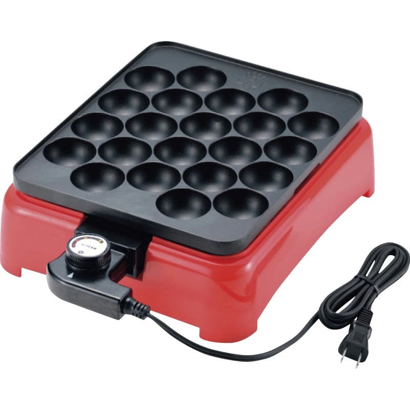 たこ焼き以外にもアヒージョやシュウマイなど、アイデア次第で色々作れます。大玉22穴。プレートは脱着可能で丸洗いでき、清潔に保管できます。また、フッ素樹脂加工で生地がこびりつきにくく、返しやすい!温度調節ダイヤル付。