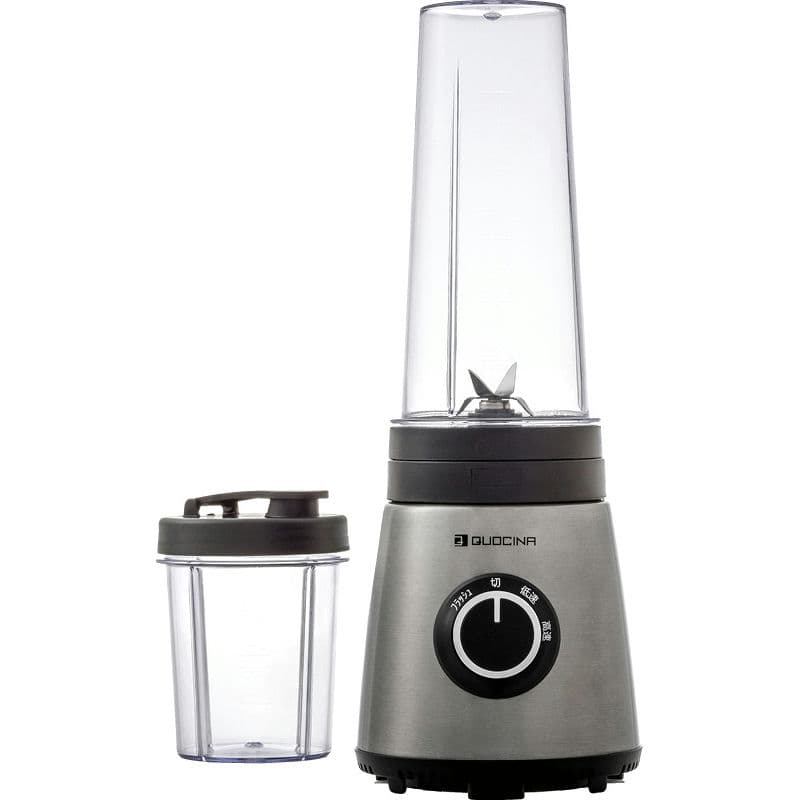 ●使い勝手の良いプラスチックボトルが2つ付属(大:600ml 小:300ml)お好みの使用量に合わせてご使用いただけます。●250Wのモーターを搭載。氷も粉砕してスムージーなどもつくれます。●高速/低速の2段階スピードとフラッシュ機能も搭載しており使いやすい設定。●ボトルを正しくセットしないと作動しない安全設計。もちろんカッター台だけでも作動しません●作ったジュースをそのまま飲めるボトルキャップ付き。ボトルのまま冷蔵庫などで保存できます。●どんなキッチンにも馴染むステンレス製の本体を採用。