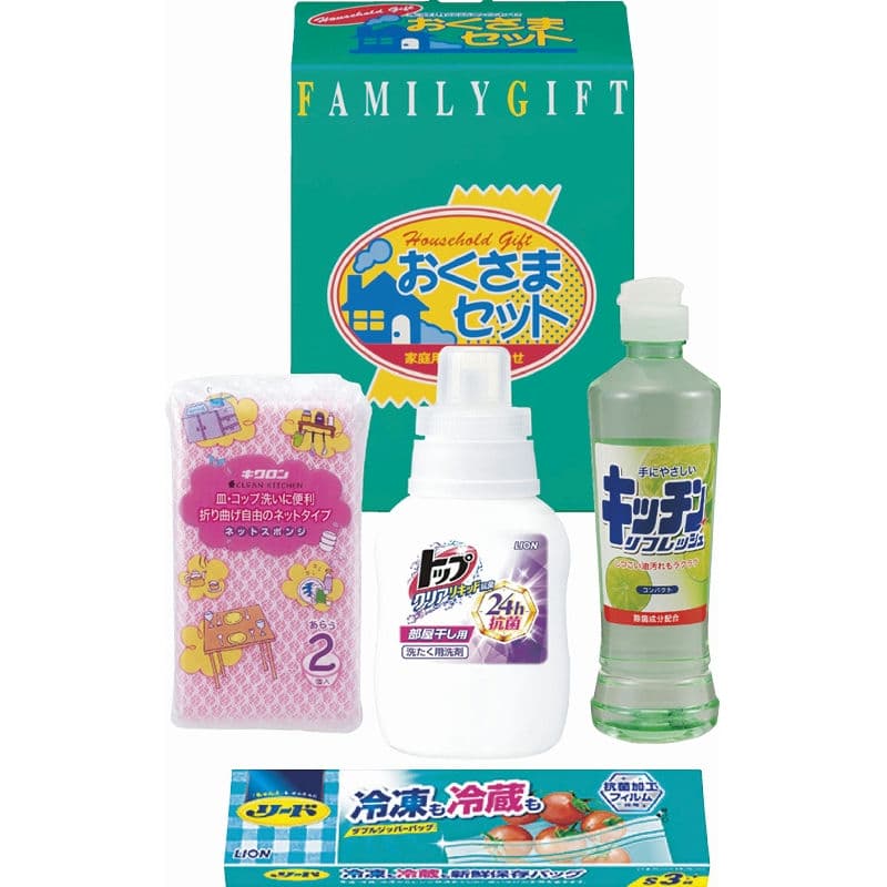 【セット内容】ライオントップクリアリキッド抗菌(300g)・キッチンリフレッシュコンパクト(270ml)・リード冷凍も冷蔵も新鮮保存バッグ(タイ)(S3枚)・ネットスポンジ(中国)(2個入)×各1