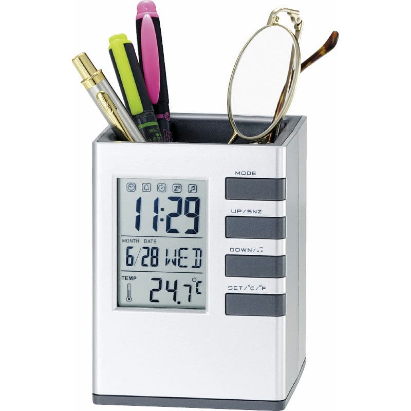 ペンや小物などフリーに収納出来る使いやすいデスクスタンドです。デジタル表示も見やすく、機能も充実しています。