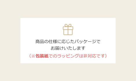 包装済みの小物商品、箱に入っていない商品、やわらかい素材の商品は、OPP袋など商品ごとに適した包装材にてお届けいたします。包装紙でのお包みが承れませんので、予めご了承ください。