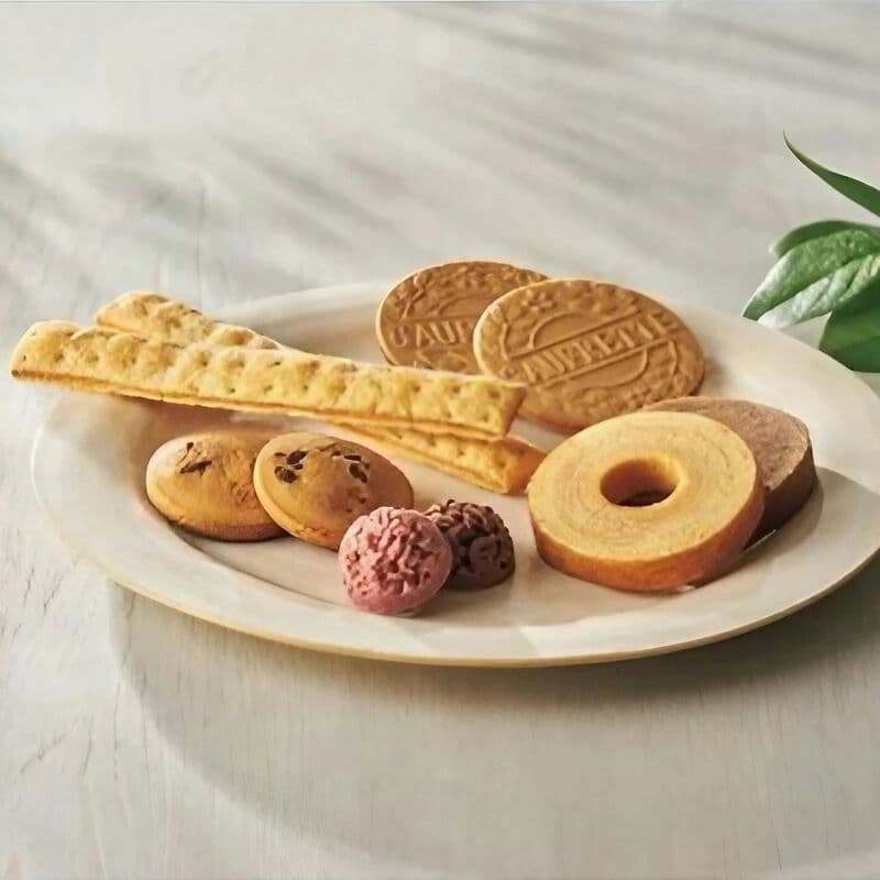 チョコチップクッキー×6、ロングスティックパイ×6、バウムクーヘン×4(ココア・バニラ×各2)、ゴーフレット×6(チョコ・バニラ×各3)、チョコレートクランチ×4(ミルク・ストロベリー×各2)