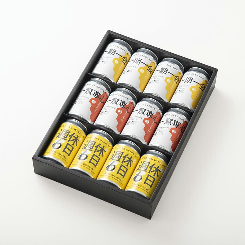 【内容】一期一会 (ICHIGO ICHIE)350㎖×4、一意専心(ICHII SENSHIN)350㎖×4、週休6日(6-DAY WEEKEND)350㎖×4、箱