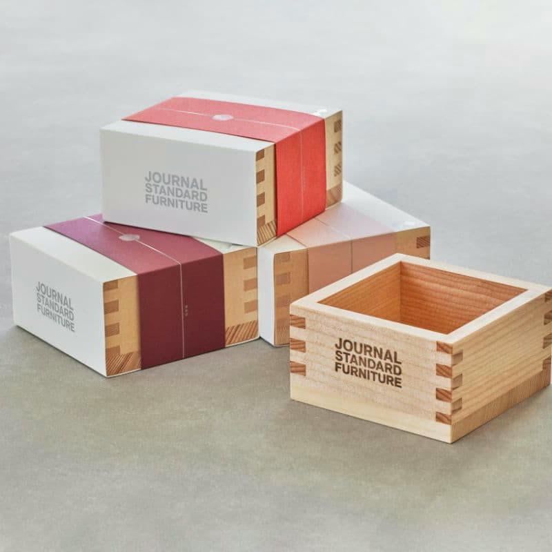 縁起物の枡(ます)を使用したパッケージはインパクト抜群。