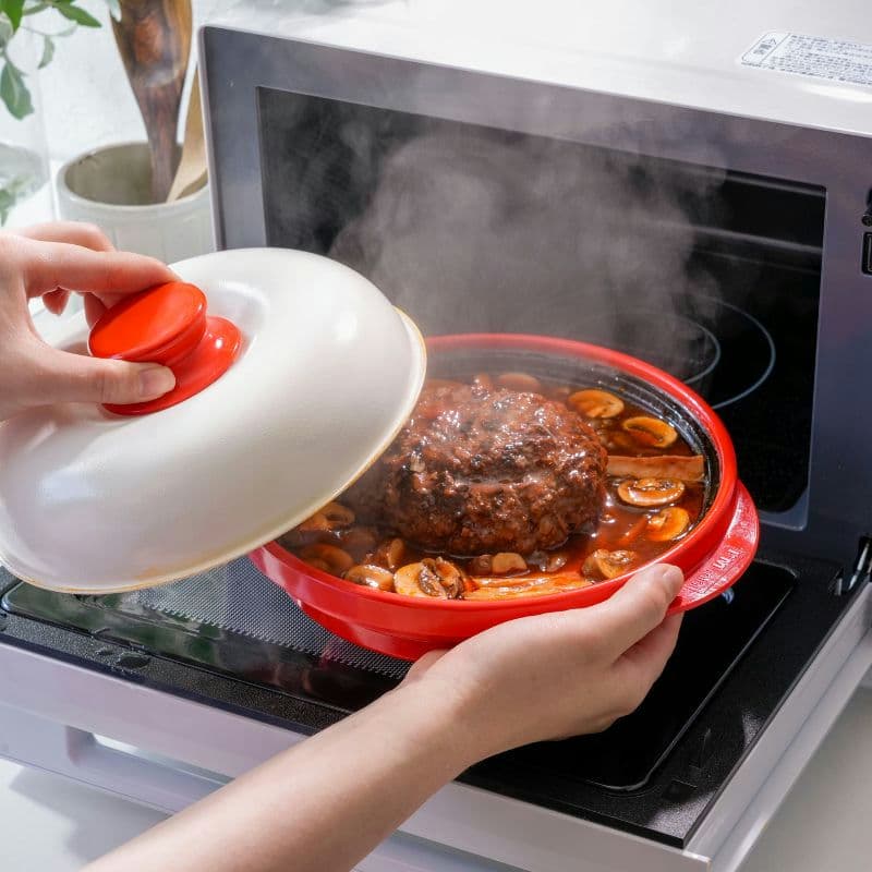 セラミックコーティングのフタによりマイクロ波が食材に届くのを防ぐため、栄養や旨味を逃さず美味しい料理が出来上がります。