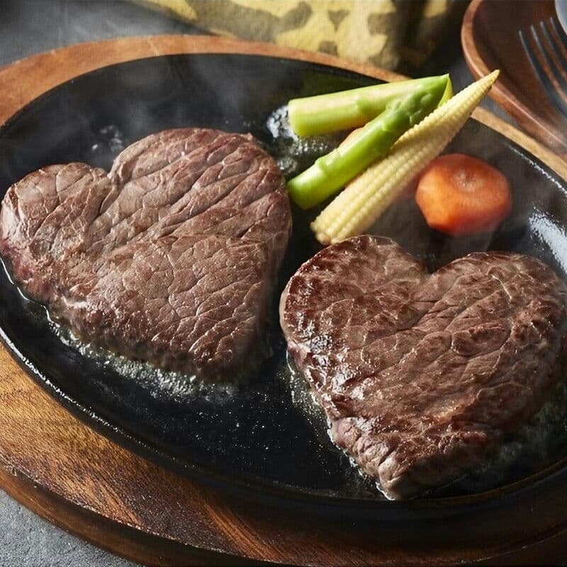 ハート型ステーキで、素敵なひと時をお過ごしください。