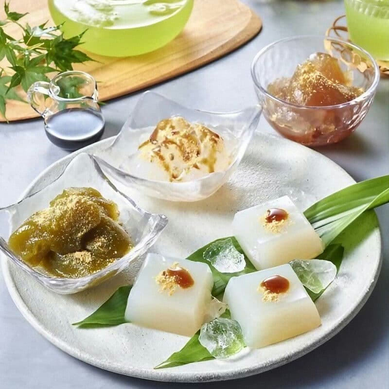 【わらび餅 抹茶】砂糖(国内製造)、抹茶、蕨粉/加工澱粉、トレハロース【くずもち】澱粉(甘藷、本葛)(国内製造)、砂糖、寒天