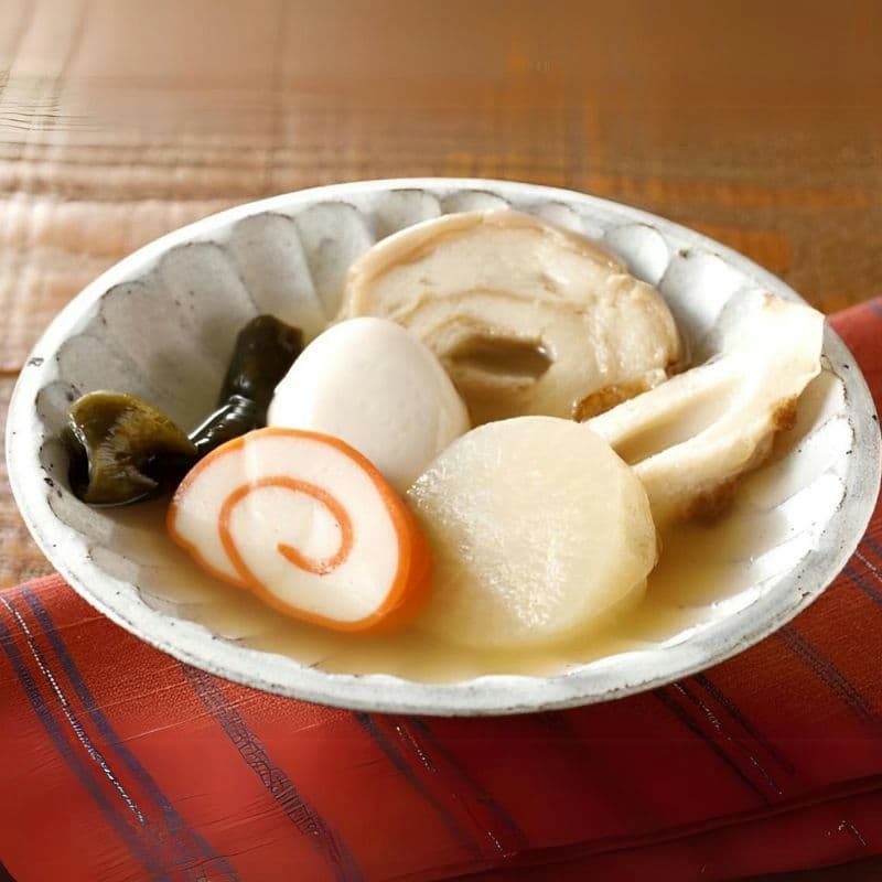 昆布と鰹の合わせ出汁に、車麩や赤巻等のユニークな具材が特徴の個食おでん。一人前づつ個包装になっておりますので、袋のままお湯で温めて気軽にお召し上がり頂けます。