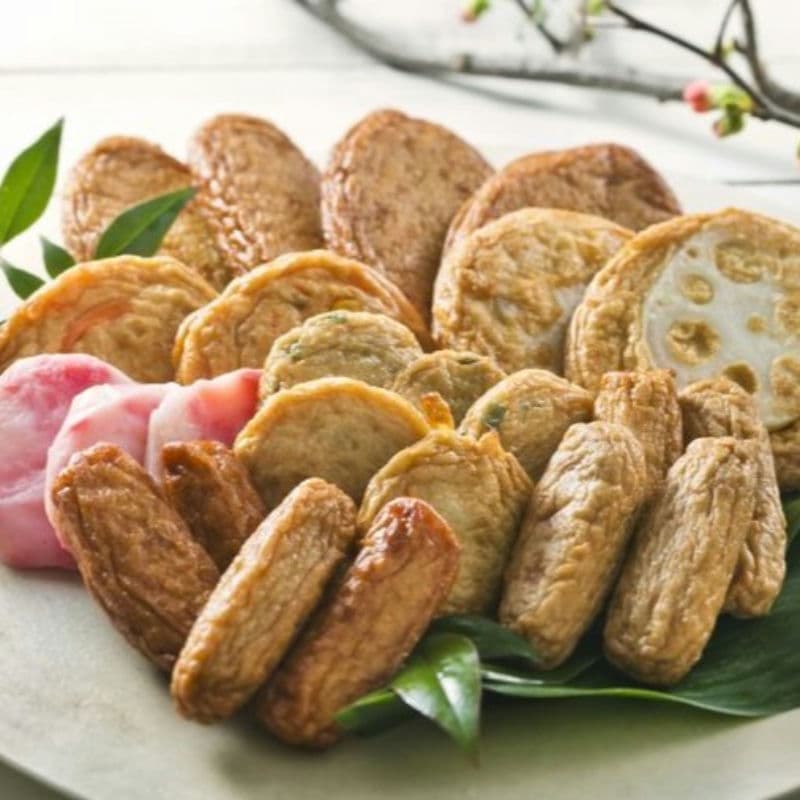 【商品内容】にら天×3、紅しょうが天×3、ごぼう天×2、特上揚×4、野菜天×2、上棒天×4、れんこん天×2、いわし棒天×4