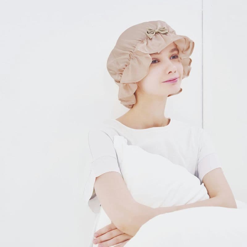 寝る前に被るだけで気軽にヘアケアができるので、毎日を忙しく過ごす方への髪を労わる贈り物にぴったりです。ワンポイントでベージュのリボンが付いており、上品でかわいらしいデザインです。