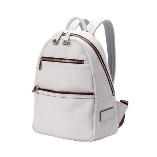 「CREEZAN(クリーザン)」の定番人気モデル「JETTER RUCK」のかわいいミニサイズ。イタリア産の高級シュリンクレザーを使い、深みのあるホワイトカラーとコンパクトで丸みのあるフォルムが持ち味のリュックです。洋服とコーディネートしやすく、アクセントにメタルパーツが際立ちます。マチ幅が広くたっぷり収納できるので、ビジネスにもお出かけにもおすすめ。強撥水加工が施されていて汚れに強いのも特徴。