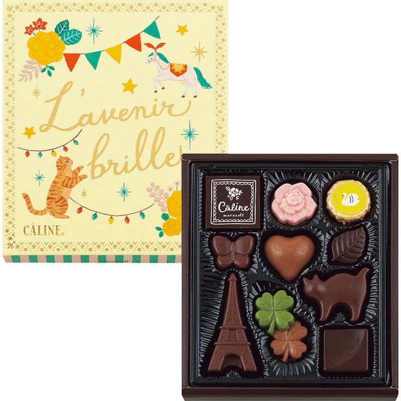 パリをイメージしたエッフェル塔や可愛らしい猫、クローバやバラなどキュートな形のチョコレートを詰め合わせました。