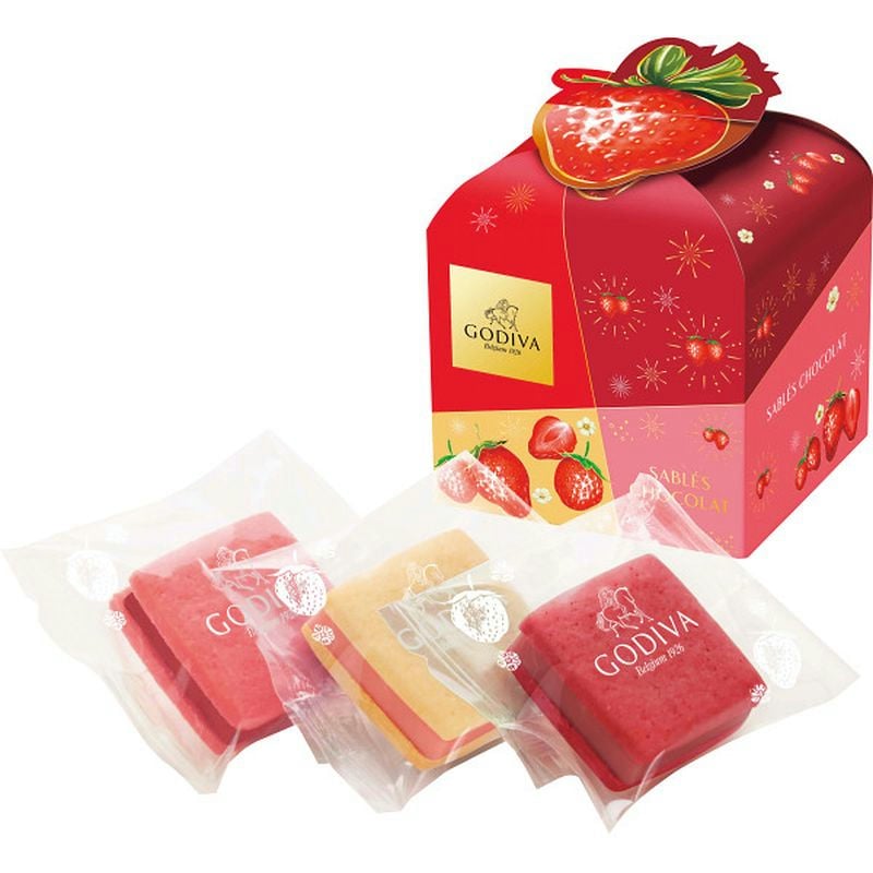 サクッと焼き上げたサブレでなめらかなチョコレートガナッシュをサンドしました。バレンタイン限定の「ストロベリー」フレーバー3種を苺のイラストが可愛らしいボックスに詰め合わせました。
