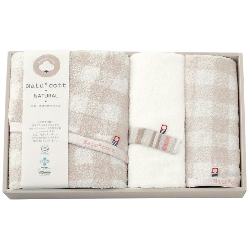 現品・内容・サイズ・材質: 60×120cmバスタオル1枚・34×80cmフェイスタオル1枚・34×36cmウォッシュタオル1枚・綿100%・[日本製]