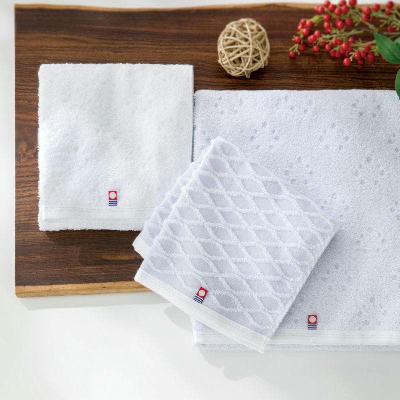 厳選された良質な綿をブレンドし、今治が誇るジャカード織技術によって美しい輪奈織紋様に織り上げました。